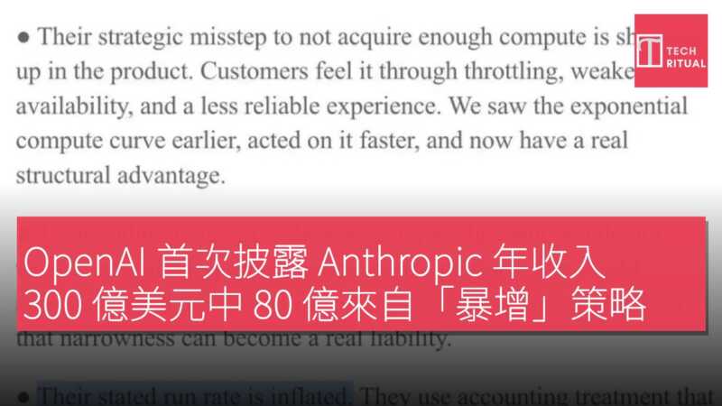 根據外媒報導,OpenAI首席財務官德尼絲·德雷斯(Denise Dresser)向員工發了一份四頁的備忘錄,裡面提到Anthropic的增長、盈利不足、產品策略。備忘錄中還提到這樣一件事,Anthropic把分給投資者的報酬也算進了總收入中,進而使得其年收入數字變得龐大。這件事的起因是在一週前的4月7日,Anthropic首次高調宣佈其年收入達到300億美元,成績超過OpenAI的250億美元。