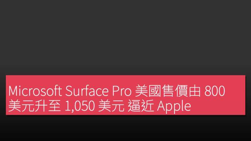 Microsoft Surface Pro 美國售價由 800 美元升至 1,050 美元 逼近 Apple MacBook Neo 兩倍