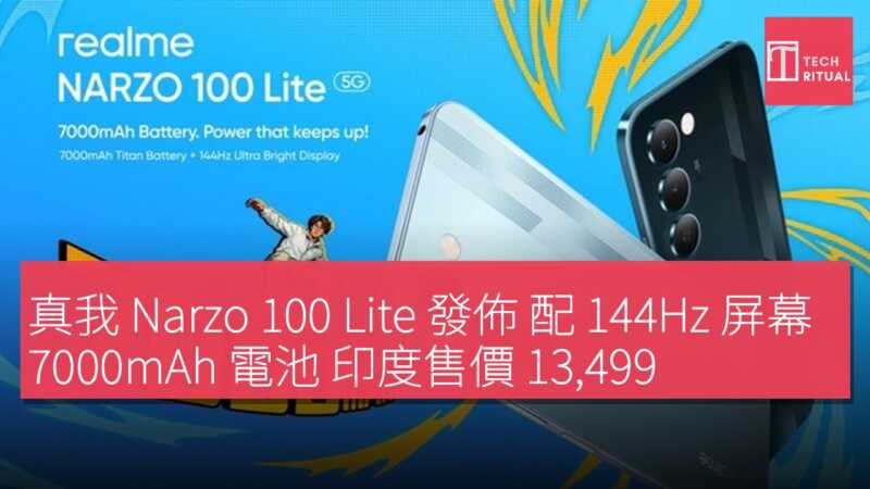5mm 耳機接口,以及 5300 平方毫米的 VC 散熱系統。 真我 Narzo 100 Lite 提供「冰霜銀」及「雷霆黑」兩種配色,三種儲存版本售價分別為 4GB+64GB 版本 13499 印度盧比、4GB+128GB 版本 14499 印度盧比,以及 6GB+128GB 版本 16499 印度盧比。