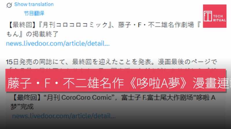 藤子·F·不二雄名作《哆啦A夢》漫畫連載正式完結