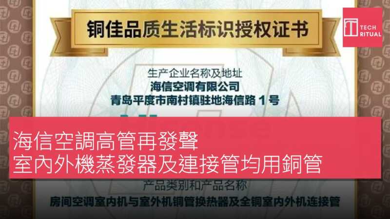 格力電器 CMO 朱江洪 發文 指控 海信空調 在廣播中 開始 使用 自家「真銅實料」 並要求 自查 產品 含銅電機 、銅管 一事。海信空調 事物部 品牌總監 楊旭東 最新 回應 稱:「市場上 主流 大品牌 空調 都是 銅管 ,這是 行業 的 品質共識。」他 指出 ,「對 海信空調 來說 ,室內機 室外機 冷凝器 和 蒸發器 以及 室外機 連接管 均為 銅管 ,且 高能效 產品 使用 雙排 銅管 ,平穩地說 ,市場上 的 主流 大品牌 ,包括 美的 、海爾 ,也 大多 使用 銅管。