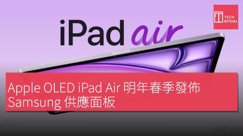 ET News 引述供應鏈人士透露,Samsung Display 將於年底或明年 1 月左右啟動 iPad Air OLED 面板的大規模生產,用以供應下一代產品。Apple 計劃於明年上半年推出該機型,填補現有 M4 iPad Air 在入門款與 iPad Pro 之間的中階定位。不過,此面板規格預計低於高端 ProMotion 版本,Apple 料會保留高階功能予頂級型號。