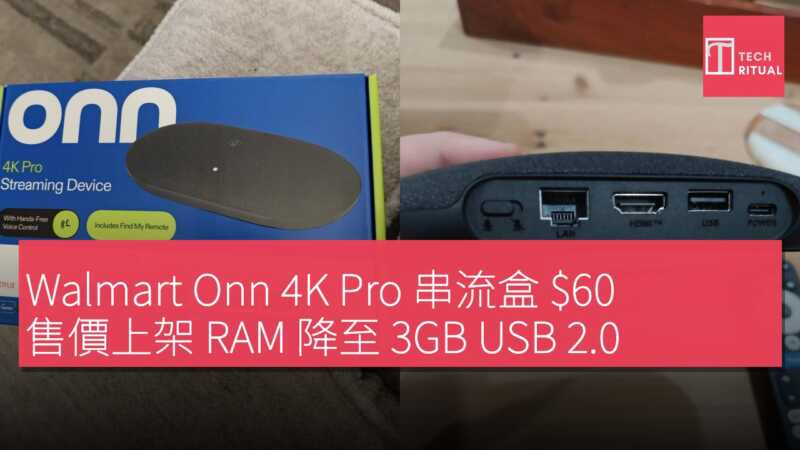 Walmart 全新 Onn 4K Pro 串流盒開始登陸店舖貨架,這款裝置售價僅 US$60,約 HK$468,預計將與 Google TV Streamer 展開競爭。Walmart 早前已確認推出 Onn 4K Pro 後繼機型,該機頂盒近日如期現身店內。有 Reddit 用戶在當地 Walmart 門市發現 2026 年更新版,並成功購買,分享首度硬體曝光照,並驗證部分關鍵規格。