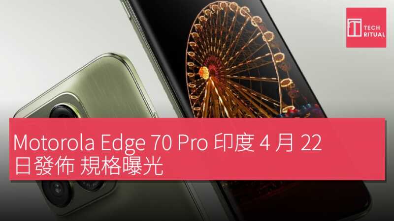 Motorola 經過一系列預熱後,正式公布 Edge 70 Pro 的發佈日期,並確認多項主要規格。這款旗艦機將於 4 月 22 日在印度首發,並透過 Flipkart、Motorola 官方網店以及線下零售商發售。機身搭載 MediaTek Dimensity 8500 Extreme 處理器,並配備 4,600 mm² 蒸汽冷卻腔體,最高搭配 12GB LPDDR5X RAM,提升多工效能。