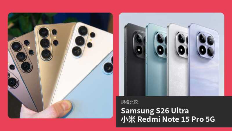 【手機比較】Samsung S26 Ultra 與 小米 Redmi Note 15 Pro 5G:規格表、效能、攝影功能