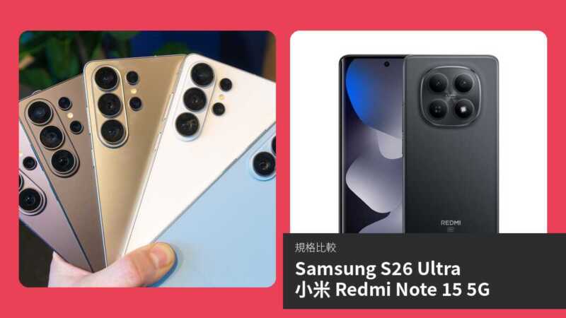 | 項目 | Samsung S26 Ultra | 小米 Redmi Note 15 5G |