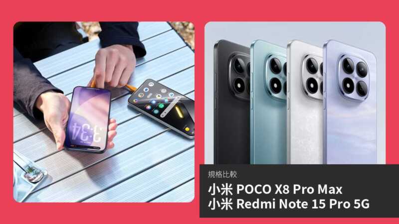 小米 POCO X8 Pro Max 作為較新推出的旗艦級中階手機,以強勁效能和超大電池聞名,而小米 Redmi Note 15 Pro 5G 則是前一代熱門型號,憑藉高像素相機和全面防水表現備受矚目。本文將客觀比較兩款手機的規格與實際應用,涵蓋屏幕、效能、攝影、連接性等多個面向,幫助讀者了解哪款更適合日常使用、遊戲或攝影需求。透過詳細數據對比,我們將剖析各自優勢,讓選擇更明智。