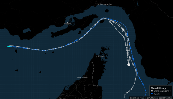 該船喺停泊期間關閉應答器,目前仍未開啟,故目的地不明。除油輪外,至少有兩艘與伊朗有關嘅集裝箱船 Golbon 號同 Kashan 號似乎成功離開波斯灣,駛向伊朗海峽航行之前往與亞基斯坦接壤嘅海域。追蹤數據顯示,兩船於周二通過海峽頂端,此前停泊喺伊朗阿巴斯港外。過去一天內,所有駛出波斯灣嘅船隻均被限制喺靠近伊朗拉拉島同昆巴島嘅一條短暫北側航道內。