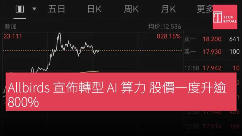 剛從伊隆Elon Musk(Elon Musk)引發的美國股市動盪場中走出,市場迅速聚焦一樁新奇轉型故事:潮流鞋品品牌 Allbirds 宣佈「棄鞋從算力」,引發股市圍觀熱潮。截至今朝,前一交易日收盤價僅 2.49 美元的 Allbirds,最新股價屢屢突破 18 美元,日內最高漲幅一度超過 800%。消息面上,公司周三發佈公告指,正將主營業務轉向人工智慧算力基礎設施領域,後續將改名 NewBird AI,並已達成一項最多達 5000 萬美元的融資協議。