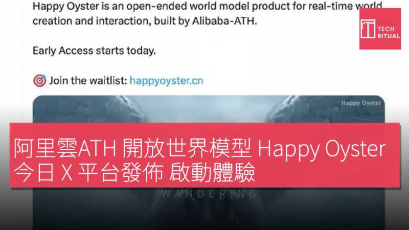 阿里雲ATH 開放世界模型 Happy Oyster 今日 X 平台發佈 啟動體驗