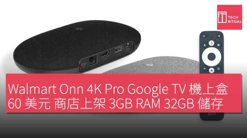 Walmart 今年的 Onn 4K Pro 提供黑色及灰色兩款,後者令想起 Google 早期 Home 揚聲器如 Home Mini。裝置售價 US$59.88,約 HK$467,定位為高性能 Google TV 盒子,配備 3GB RAM(較 Onn 4K Plus 高 50%),確保應用流暢、多工無阻。32GB 儲存空間為雙倍容量,支援下載更多應用及內容。