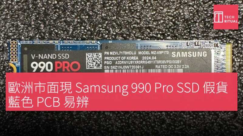 歐洲市場出現假冒 Samsung 990 Pro SSD,這是繼日本事件後,該型號第二次被揭露假貨案。根據 ComputerBase 社群資深成員反饋,4 月初從奧地利一間網店購買兩塊 Samsung 990 Pro,外觀初看與正品高度相似,但仔細比對後發現明顯差異,包括背面 CE 標誌等符號的位置與正品存在偏差。 拆開後差異更為顯著,假貨 SSD 採用藍色 PCB 板,而正品 Samsung 990 Pro 一律使用黑色 PCB。