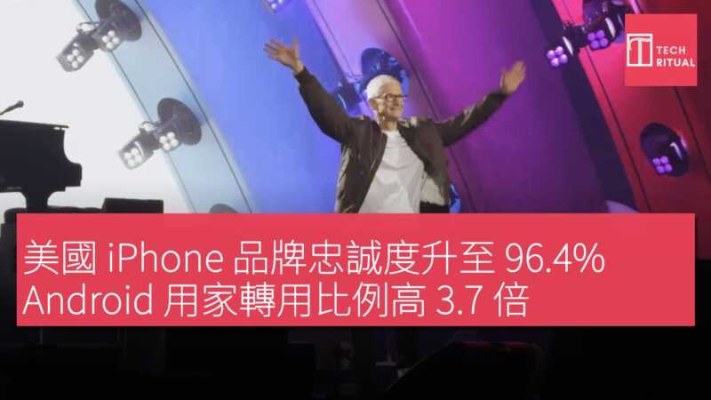 美國 iPhone 品牌忠誠度升至 96.4% Android 用家轉用比例高 3.7 倍