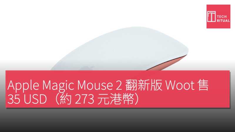 Apple 的 Magic Mouse 一直以來售價不算親民,但若想配搭新款 MacBook,Woot 平台現正提供翻新版本,售價僅 US$35,約 HK$273,低於原價 US$79 的近半。雖然標明為翻新品,但產品狀況良好,並附 90 天 Woot 有限保養,確保基本保障。