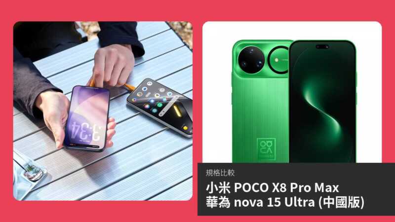 | 項目 | 小米 POCO X8 Pro Max | 華為 nova 15 Ultra (中國版) |