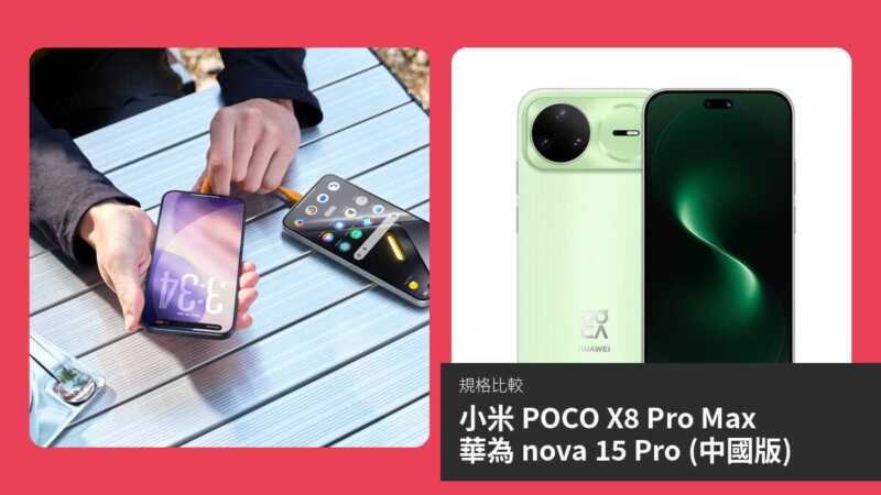 整體而言,POCO X8 Pro Max 硬體規格更強,續航與效能突出,為大多數用戶更佳選擇;華為則在相機與軟體整合勝出。若預算允許且偏好 Android 生態,選 POCO;若重視攝影與華為服務,nova 15 Pro 更合適。最終依個人需求而定。
