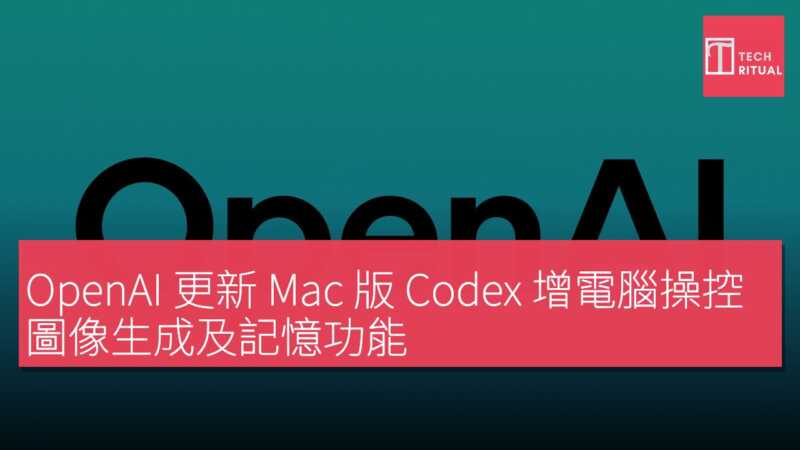 OpenAI 更新 Mac 版 Codex 增電腦操控 圖像生成及記憶功能