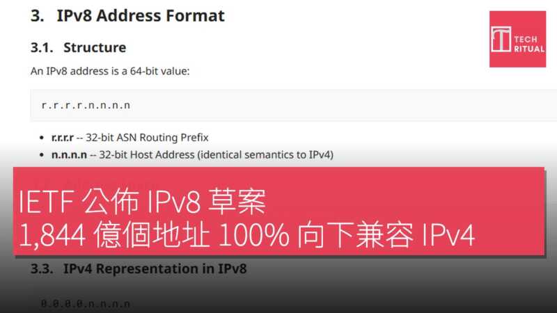 IETF 公佈 IPv8 草案:1,844 億個地址 100% 向下兼容 IPv4