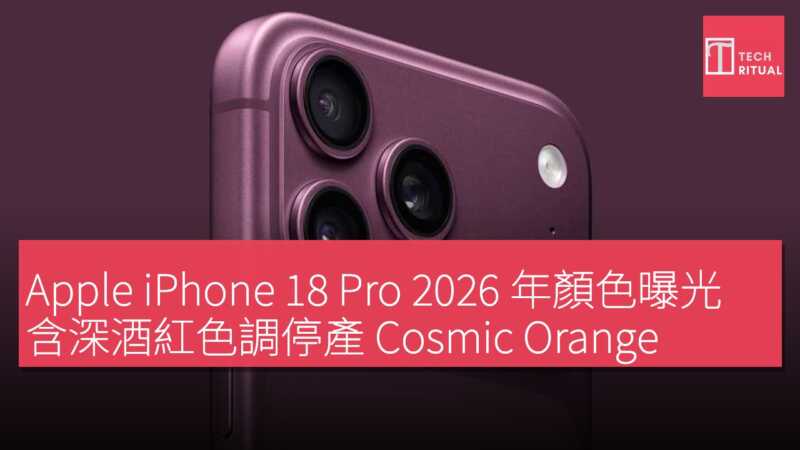 據悉,Apple 內部消息透露 iPhone 18 Pro 系列預計於 2026 年推出全新配色方案,其中最引人注目的是名為「Dark Cherry」的深酒紅色調,類似濃郁紅酒色澤。該系列將提供 Light Blue、Dark Gray 及 Silver 選擇,同時停用 iPhone 17 Pro 的 Cosmic Orange。 Apple 計劃於 2026 年 9 月發佈 iPhone 18 Pro、iPhone 18 Pro Max,以及傳聞中的折疊式 iPhone Ultra,後者配色選
