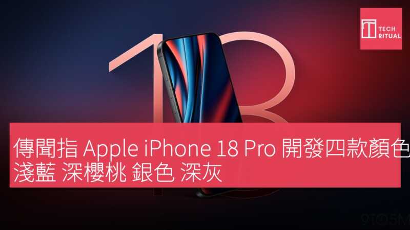 最新傳聞為 Apple iPhone 18 Pro 及 iPhone 18 Pro Max 的顏色陣容增添更多細節。據報導,今年 iPhone 18 Pro 系列正開發四款顏色,由熟悉 Apple 供應鏈的消息人士透露。