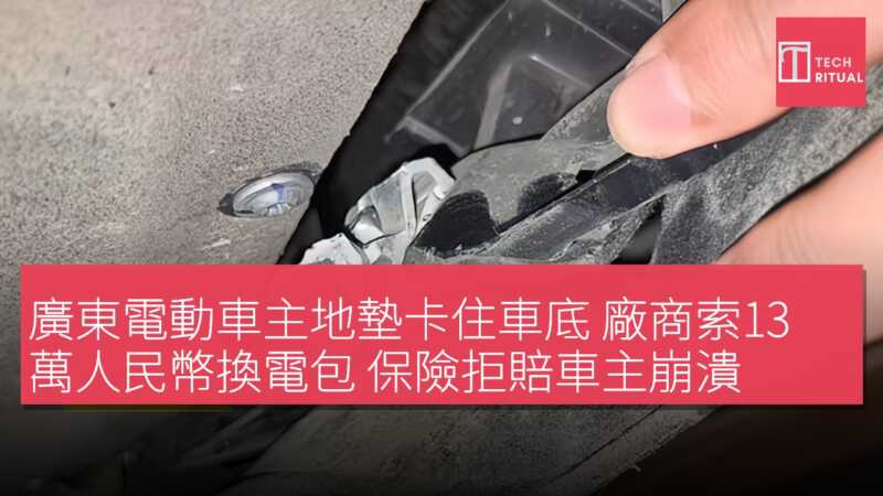 據報導,一名廣東電動車車主剛提車一個月,在停車場剎車時,地墊突然卡入車底底盤,導致電動箱外殼上出現一個與輪胎連動的塑膠卡扣斷裂。該卡扣與電動箱為一體化結構,廠商以「IP68 密封完整性不可修復」及「一體化設計」為由,拒絕單獨維修卡扣,強制要求更換整組電動箱,報價高達 13 萬元人民幣,約 HK$141,700,幾近半輛車售價!