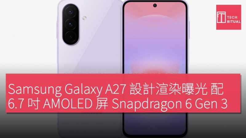 Samsung Galaxy A27 設計渲染曝光 配 6.7 吋 AMOLED 屏 Snapdragon 6 Gen 3 晶片