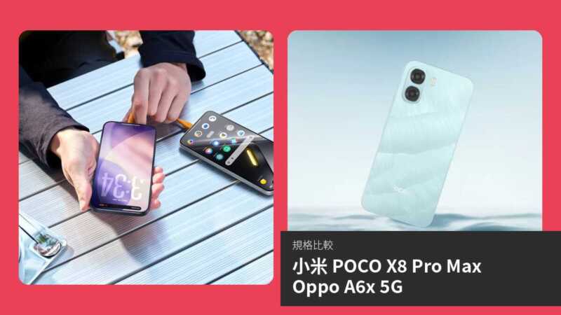 綜合比較,小米 POCO X8 Pro Max 在屏幕、效能、攝影、電池、連接性及防水等絕大部分項目大幅領先,適合追求高性能、遊戲及專業攝影的用戶,是整體更強勁的選擇。Oppo A6x 5G 雖在價格親民及保留 3.5mm 耳機孔方面有優勢,適合預算有限、日常通訊及基本娛樂的入門用戶。若無特殊需求,小米 POCO X8 Pro Max 為更值得推薦的旗艦級產品。