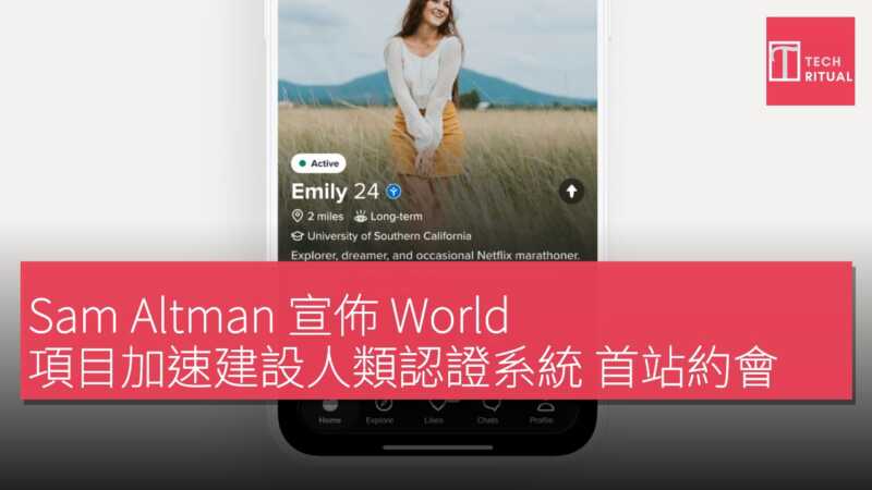 在舊金山灣區附近的一家時裝場地,Sam Altman 親自的類人身份驗證項目 World 宣布進入全新發展階段,並展示其快速擴張野心,而第一個落地重點正是交友應用 Tinder。World 背後的公司 Tools for Humanity(TFH)當天表示,計劃將其驗證技術嵌入約會應用、演出和活動票務系統、企業服務、電子郵件及其他線上場景。Altman 在現場對全場觀眾表示,世界正走向「極其強大的人工智能時代」,AI 帶來諸多益處,但也意味著網上由 AI 生成的內容和行為將超過人類,人們越來越常