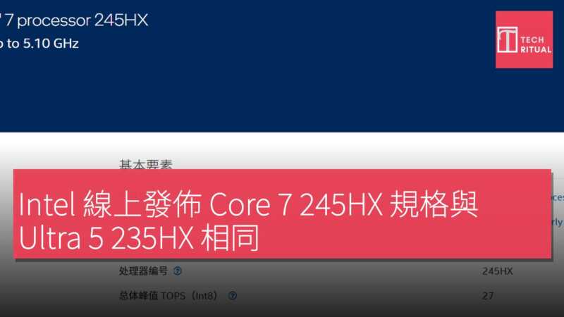 憶體。最關鍵的是,Intel 產品線中已存在一款 Core Ultra 5 245HX,能稱 245HX 只是完全不同的型號,規格也不相同。Ultra 5 245HX 支援 ECC 記憶體及 Intel vPro Enterprise,配備 AMT 管理功能,P 核基頻更高 (3.1GHz),核顯頻率也提升至 1.9GHz。 也就是說,Core 7 245HX 在規格上對標的是 Ultra 5 235HX,而非同數字的 Ultra 5 245HX。