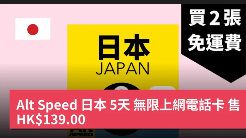 Alt Speed 日本 5天 無限上網電話卡