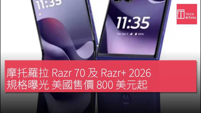 面向美國市場的 Razr+ 2026 升級關鍵規格,預計 Razr 2026 起售 US$799.99,約 HK$6,240;Razr+ 2026 起售 US$1,099.99,約 HK$8,580;Razr Ultra 2026 起售 US$1,499.99,約 HK$11,680;Razr Fold 2026 起售 US$1,899.99,約 HK$14,820。