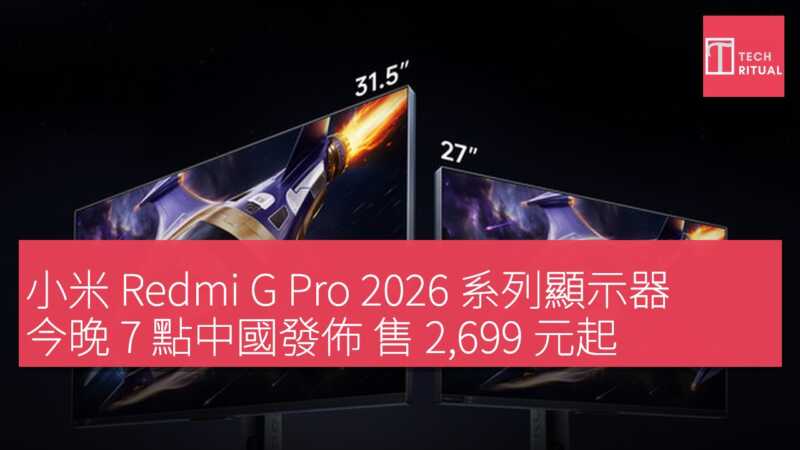 小米 Redmi G Pro 2026 系列顯示器 今晚 7 點中國發佈 售 2,699 元起