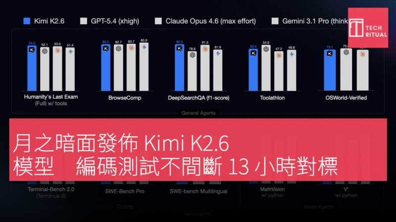 月之暗面發佈 Kimi K2.6 模型 編碼測試不間斷 13 小時對標 GPT-5.4