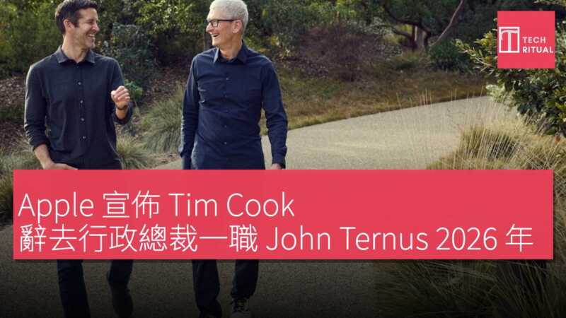 Apple 宣布,現任行政總裁 Tim Cook 將辭任 CEO 職務,由現任硬件工程高級副總裁 John Ternus 接任,下任 Apple CEO 將於 2026 年 9 月 1 日生效,並加入董事會。Cook 將持續擔任 CEO 直至夏季,期間與 Ternus 密切合作確保交接順利。其後,Cook 將出任 Apple 董事會執行主席,負責協助公司部分事務,包括與全球政策制定者溝通。