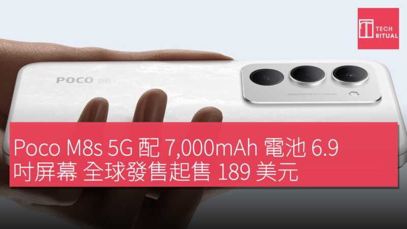 Poco M8s 5G 是小米旗下 M8 系列的最新成員,配備 7,000mAh 大容量電池及 6.9 吋屏幕,目前已在全球市場發售,起價 US$189,約 HK$1,474。