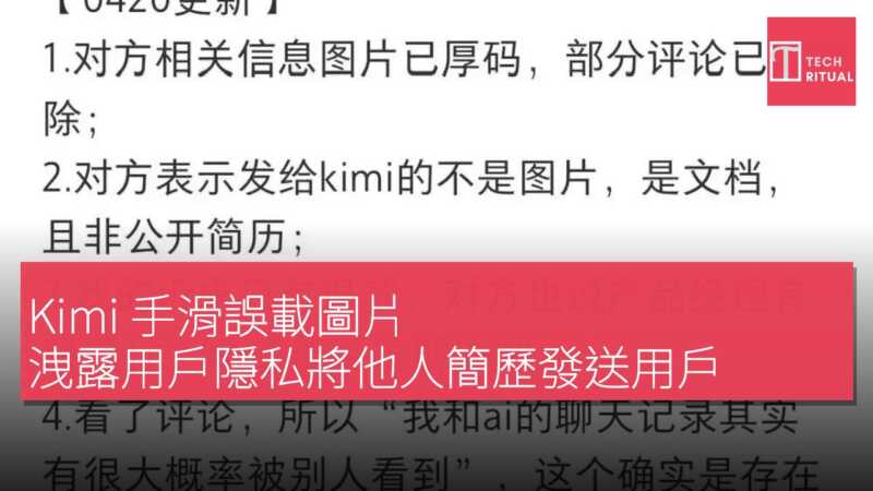 有網友在社交媒體平台發文,指月之暗面 Kimi 出現用戶隱私洩露情況。他表示,使用 Kimi 時不慎滑動錯誤了一張圖,Kimi 先輸出一段無關的工程學文字,隨後直接回覆一份包含姓名、電話、電郵等真實資訊的簡歷,懷疑為其他用戶上傳的簡歷被系統錯誤發送。事後,該網友與 Kimi 運營方月之暗面取得聯繫,對方解釋稱是 AI 出現了幻覺,並希望網友刪除該筆記錄。但該網友與簡歷被洩露者取得聯繫,雙方確認事實時間線後,表示無法接受月之暗面的這個理由,並拒絕刪除該內容。