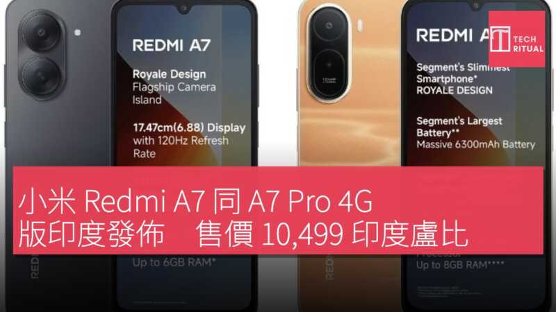 小米 Xiaomi 最近在印度發佈 Redmi A7 Pro 5G 手機,隨後推出 A7 Pro 的 4G 版本,以及標準的 Redmi A7 4G 型號。Redmi A7 4G 配備 6.88 英寸 LCD 屏幕,而 A7 Pro 4G 則升級至 6.9 英寸面板。兩款手機均支援 120Hz 刷新率、HD+ 解析度,以及 240Hz 觸控採樣率。