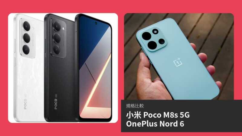 小米 Poco M8s 5G 則在大屏幕 (6.9 吋)、儲存擴展 (microSD 2TB)、IR blaster 及親民配置上佔優,適合預算有限、注重續航及儲存擴充的用戶。整體而言,Nord 6 更強,值得等待;若急需,Poco M8s 5G 為實用選擇。