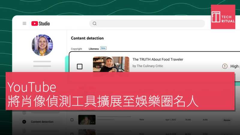 YouTube 正將其新推出的「肖像檢測」(likeness detection)技術擴展至娛樂行業,協助明星及其團隊辨識並移除平台上的 AI 生成內容及深度偽造影片。公司於周二在官網發佈公告,公布這項消息。 該工具的運作方式類似 YouTube 現有的 Content ID 系統,後台會在用戶上傳影片時自動檢測受版權保護的素材,便利版權方要求下架或參與該影片的廣告分成。