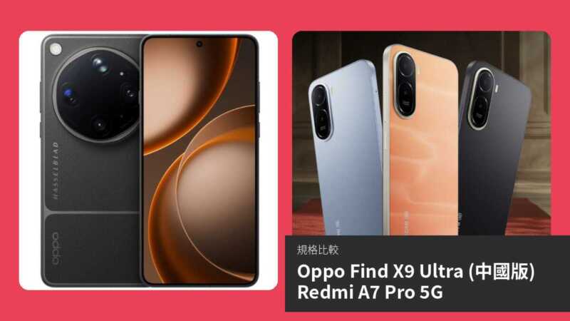| 項目 | Oppo Find X9 Ultra (中國版) | Redmi A7 Pro 5G |