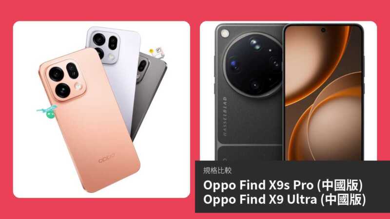 【手機比較】Oppo Find X9s Pro (中國版) 與 Oppo Find X9 Ultra (中國版):規格表、效能、攝影功能