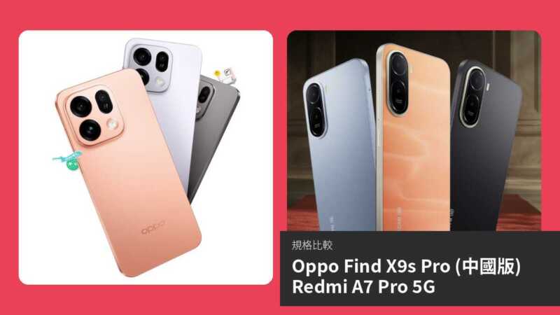| 項目 | OPPO Find X9s Pro (中國版) | Redmi A7 Pro 5G |