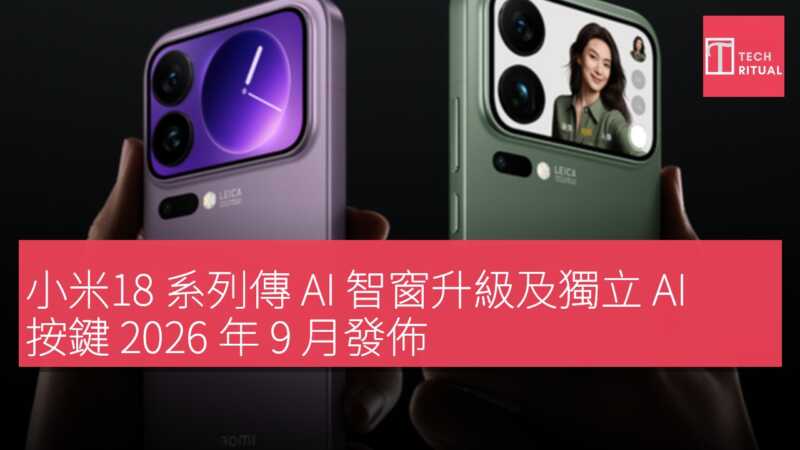 | 發佈時間 | 預計 2026 年 9 月(小米 Xiaomi 18 / Pro / Pro Max),12 月 Ultra 版 |