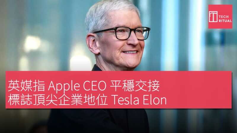 英國《金融時報》Lex 專欄作家周二發文指出,Apple 公司在股價波動不大的情況下,順利完成 CEO 平穩交接,這是「終極企業地位置徵」。其他公司換帥則可能帶來動盪,例如 Elon Musk 或 Mark Zuckerberg。