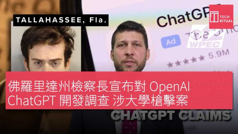 美國佛羅里達州檢察長詹姆斯·烏斯邁爾(James Uthmeier)周二表示,該州將對 OpenAI 及其人工智能應用 ChatGPT 展開調查,調查範圍包括去年發生在佛羅里達州立大學的一起槍擊案,該案導致兩人死亡。去年 4 月,一名槍手在佛羅里達州立大學槍殺兩人、傷六人,隨後被警方擊斃並送院。該嫌疑人被控多項謀殺及企圖謀殺罪名。 烏斯邁爾在新聞發佈會上表示:「這款聊天機器人會建議槍手使用哪種槍支部、哪種彈藥適合哪種槍支部,以及槍支部在近距離是否有效。