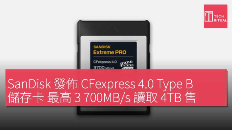 SanDisk 近日正式發佈全新一代 SANDISK Extreme PRO CFexpress 4.0 Type B 儲存卡。這款儲存卡全系列採用 PCIe Gen 4 介面標準,順序讀取速度最高可達 3700 MB/s,寫入速度最高可達 3500 MB/s。售價方面,128GB 入門版售價 US$249.99,約 HK$1949.92;頂配 4TB 版本售價高達 US$1799.