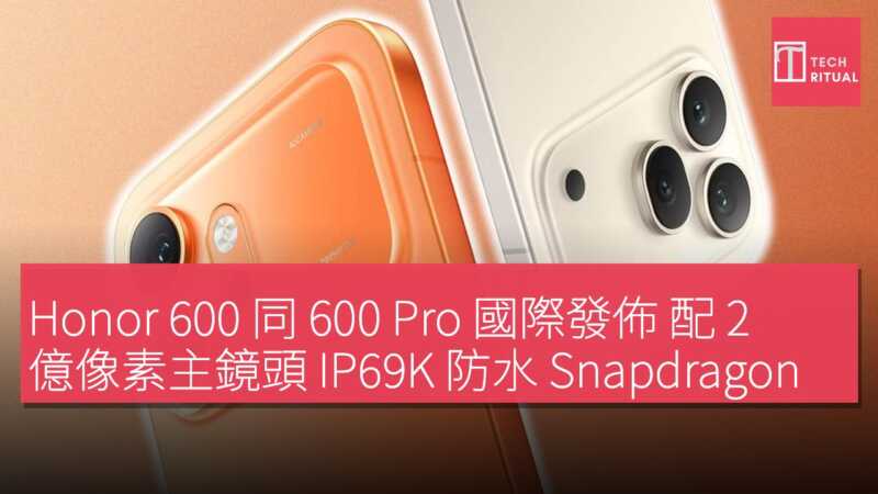 Honor 600 同 600 Pro 國際發佈 配 2 億像素主鏡頭 IP69K 防水 Snapdragon 8 Elite