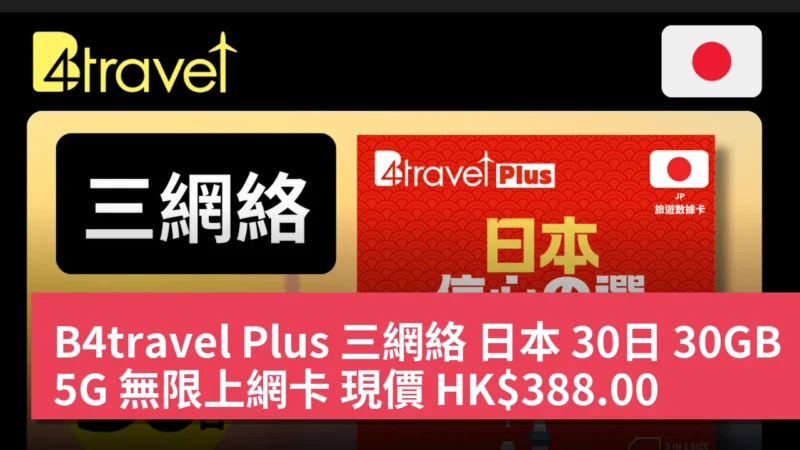 B4travel Plus 三網絡 日本 30日 30GB 5G 無限上網卡