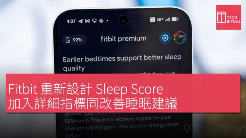 由於全新方法,Sleep Score 將與以往不同,上線後 Sleep Score 頁面會有應用內提示及簡易設定流程。Fitbit 裝置暫未全支援,Google 建議先查閱手機應用程式。