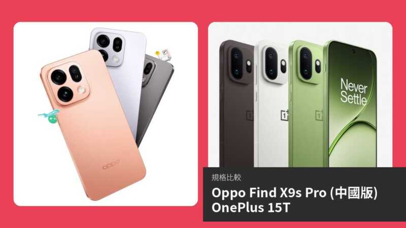 | 項目 | OPPO Find X9s Pro (中國版) | OnePlus 15T |